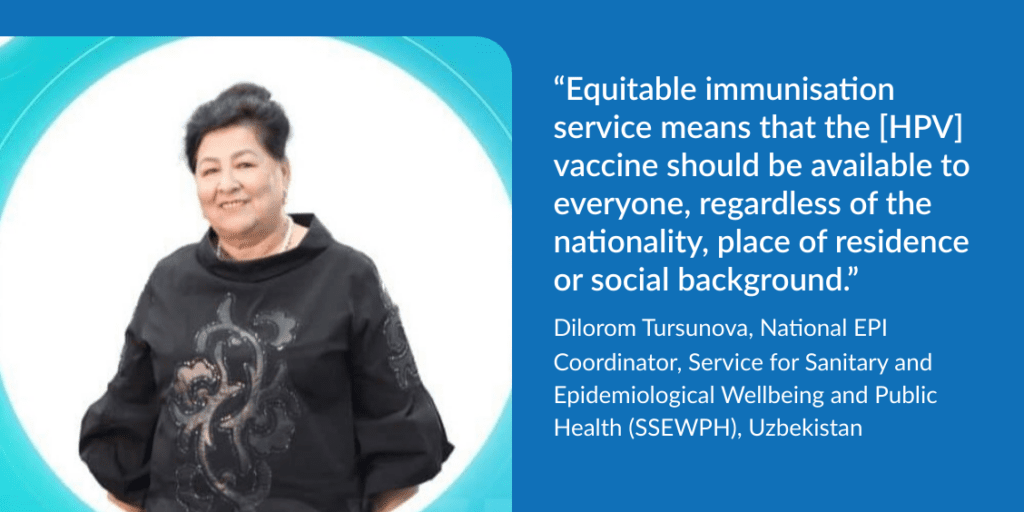 In Uzbekistan, the implementation of the HPV vaccine was very challenging. But these challenges justified all our expectations. It united researchers and health system practitioners. We used an intersectoral approach, involving all international organizations, ministries, Parliament, and the Senate.
