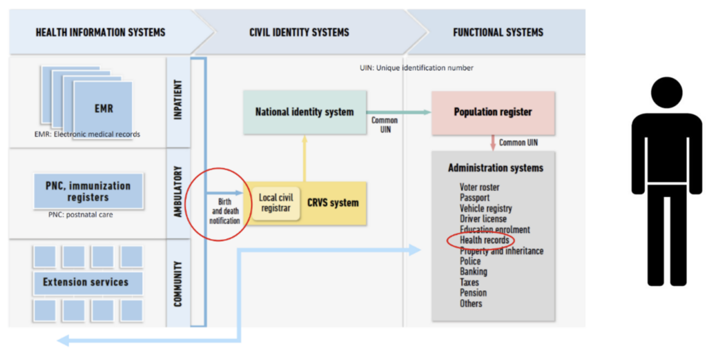 Furthermore, when national identity, civil registration, and EIRs are linked, countries can leverage integrated data to provide a holistic view of a person’s health and demographic information. This linkage supports: