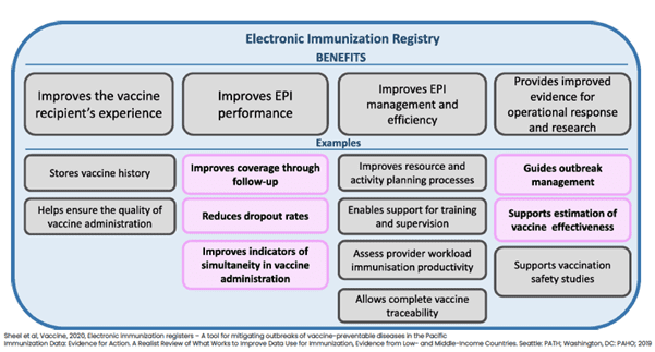 Pan American Health Organization. (2017). Electronic Immunisation Registry: Practical Considerations for Planning, Development, Implementation and Evaluation. Washington, D.C.: PAHO.